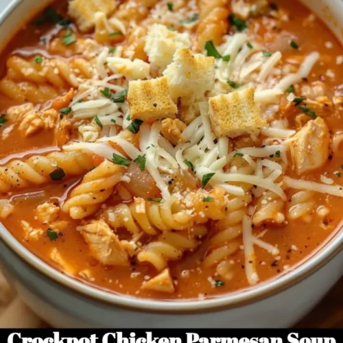 A rich, creamy soup that combines the flavors of classic chicken parmesan with the convenience of a slow cooker, perfect for busy days.