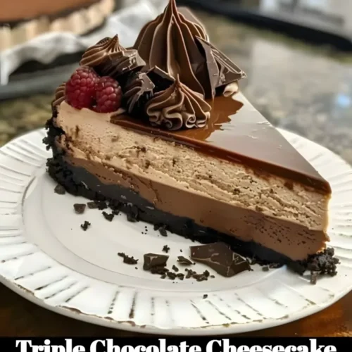 There you have it—your new go-to dessert that will turn any ordinary day into a special occasion! This Triple Chocolate Cheesecake is a true testament to the fact that a little bit of love (and a lot of chocolate) can create magic in the kitchen. As you whip up this delightful dish, I hope you create not just a beautiful cheesecake, but wonderful memories to go along with it. So go ahead, dig in, and let every heavenly bite remind you that life is meant to be savored!